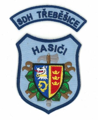 Hasičská nášivka pro hasiče z Třeběšic. Provedení dvojitý rámeček pro snadné našití.