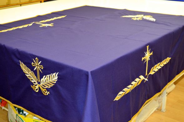 Na přání zákazníka lze zhotovit variantu černé podkladové látky se stříbrnou nebo zlatou výšivkou.