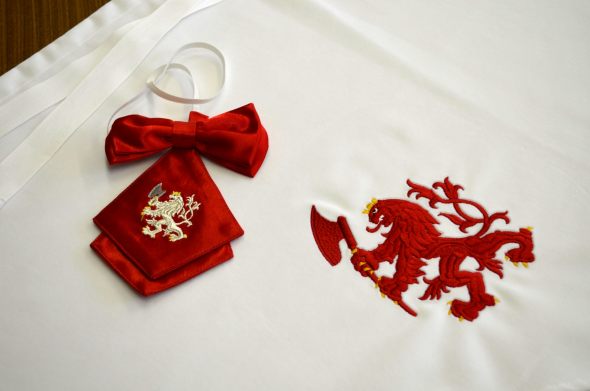 Vyšívané řeznické vlajky, zástěry, kravaty, kovové řády, pamětní medaile, odznaky, pamětní listy, udělení a další ceremoniální potřeby Vám rádi navrhneme a vyhotovíme vždy v nejvyšší kvalitě.