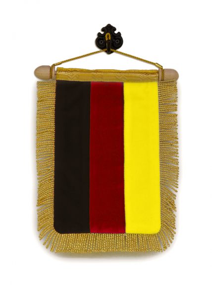 Slavnostní stolní vlaječka. Rozměr 14 x 21 cm. Materiál: samet, zlaté třásně.