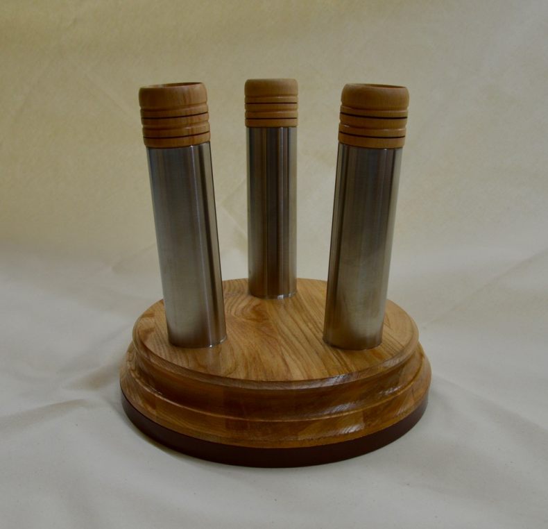Stojan je zhotoven z litinového základu zdobeného dřevem. Je určen pro použití v interiéru. Hmotnost 15,5 kg