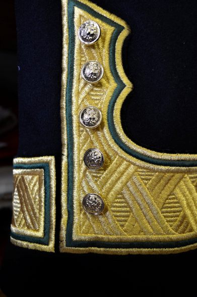 Společenský oblek můžeme na přání obohatit různými způsoby výšivky, kroucenou šňůrkou, portami, flitry, kameny, případně všitou broží či monogramy a řadou dalších doplňků.